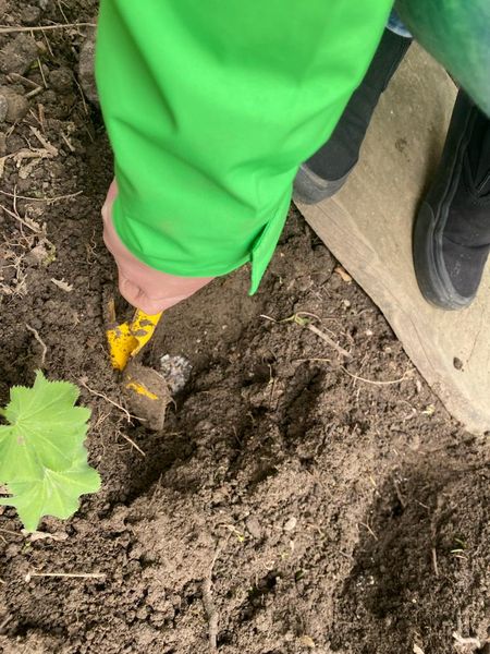 Die Klassen 2 pflanzen Kartoffeln mit Frau Hämer